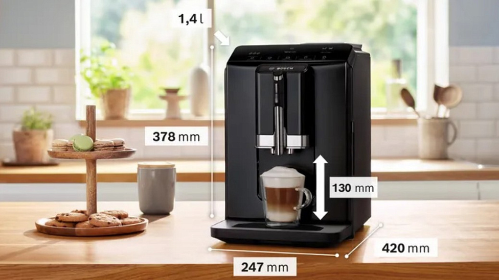 Отдельностоящая кофемашина bosch Bosch TIE20119 станет незаменимым помощником как на домашней кухне, так и в офисе. Высота модели составляет 37.8 см, ширина — 24.7 см, глубина — 37.8 см. Основной цвет данного устройства — черный, что гарантирует его сочетание с интерьером в любом стиле: от современного до ретро и классики. автоматический позволяет с легкостью приготовить вкусный и ароматный напиток с густой молочной пенкой. Машина оснащена отсеком для зерен, боксом для кофейной гущи. Режимы автоматической промывки и декальцинации гарантируют легкий уход за прибором.
