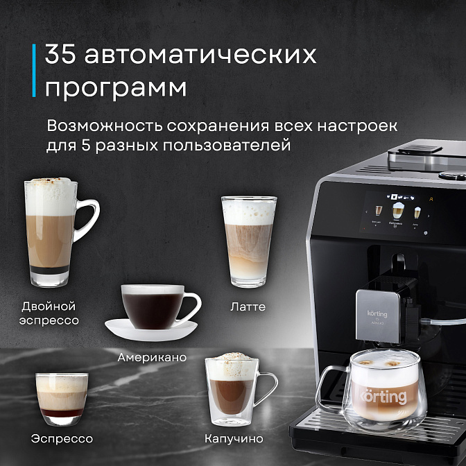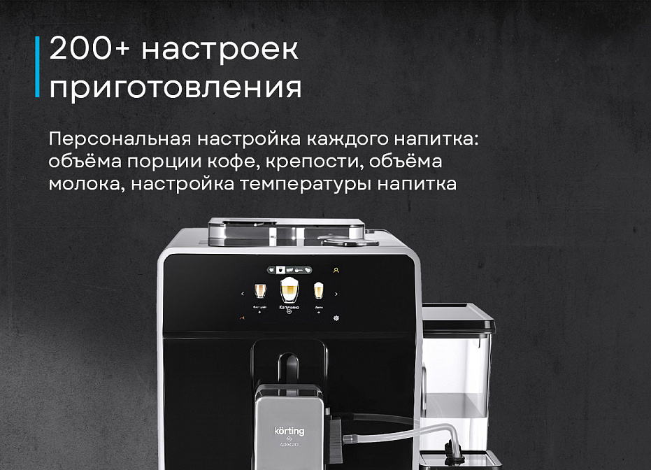 Регулировка объема напитка, Регулирование крепости кофе, Регулировка температуры кофе, Сохранение собственного рецепта, Регулировка жесткости воды