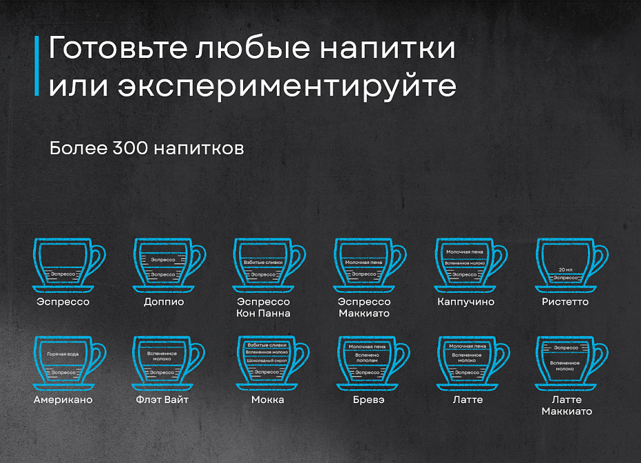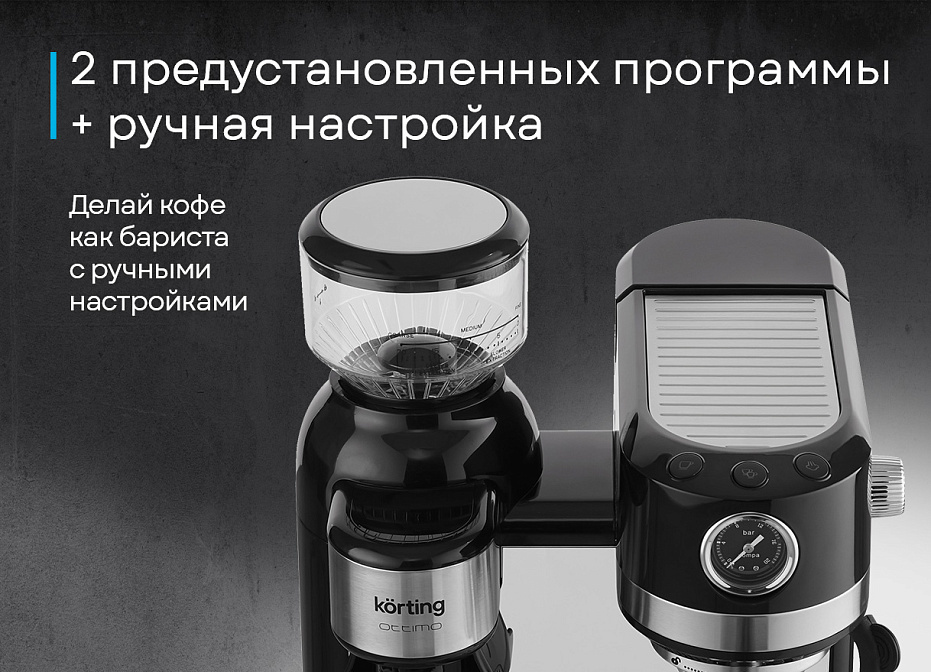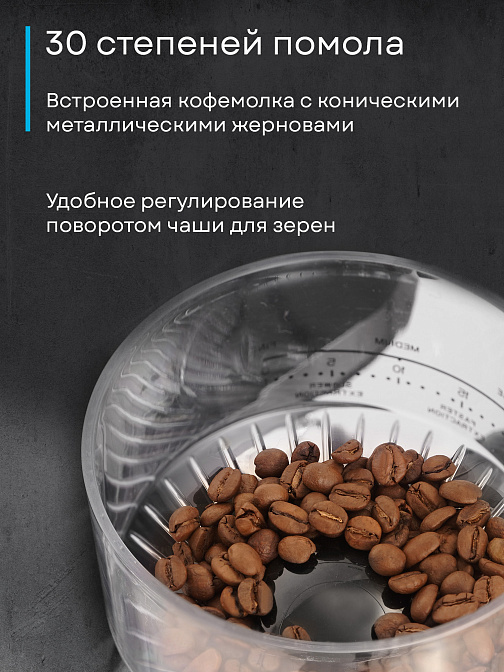 Контроль крепости кофе, Настройка температуры напитка, Подогрев чашек, Регулировка степени помола