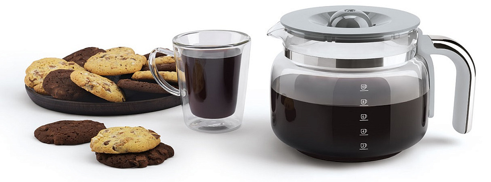 Кофеварка, Стеклянный съемный кувшин для кофе с крышкой, Мерная ложка, Документация