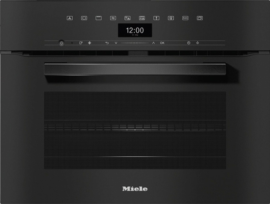 Духовой шкаф обсидианового цвета с функцией СВЧ, конвекцией и грилем. Камера покрыта эмалью PerfectClean, задняя стенка — каталитической, поэтому ее легко чистить после готовки. Автоматические и специальные программы включают размораживание, подогрев посуды, поднятие теста, консервирование и другие.