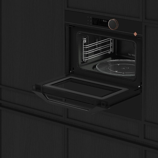 Микроволновая печь, Съемный поворотный стол, Стандартный противень, Решетка для гриля, Хромированные направляющие, Стеклянный поддон, Шнур питания, Инструкция по эксплуатации, Гарантийный талон, Заводская упаковка
