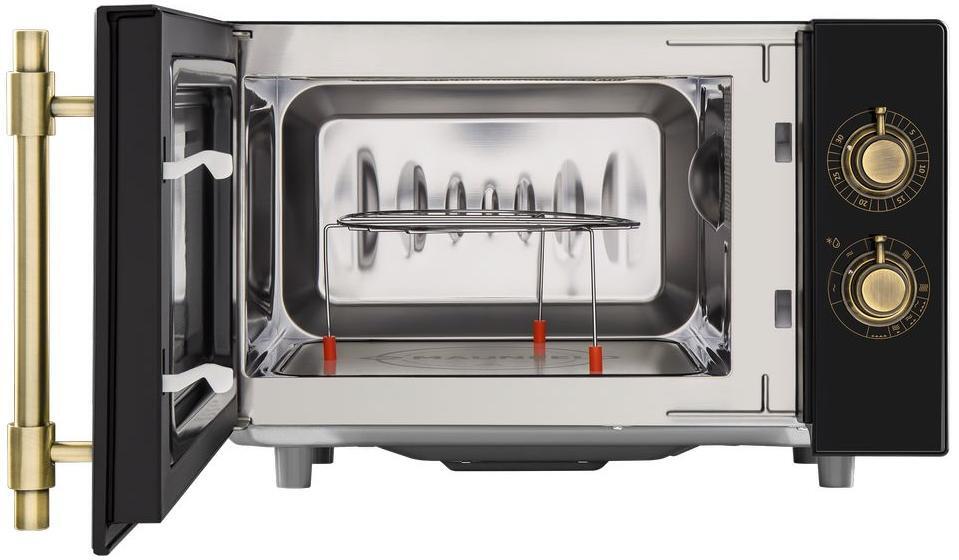 Отдельностоящая микроволновая печь Maunfeld JFSMO.20.5.GRBG шириной 45 см станет незаменимым помощником на любой кухне. Стиль модели — ретро. Цвет фронтальной поверхности прибора — черный. Объем рабочей камеры СВЧ составляет 20 л. Среди функций есть режим приготовления на гриле. Тип гриля — кварцевый. Материал изготовления внутренних стенок — нержавеющая сталь, благодаря чему они легко очищаются от жирного налета. Дверные петли расположены слева. Модель имеет поворотные регуляторы управление.