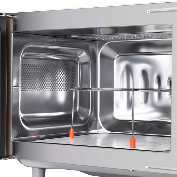 Отдельностоящая микроволновая печь Maunfeld JFSMO.20.5.GRIB шириной 45 см станет незаменимым помощником на любой кухне. Стиль модели — ретро. Цвет фронтальной поверхности прибора — бежевый. Объем рабочей камеры СВЧ составляет 20 л. Среди функций есть режим приготовления на гриле. Тип гриля — кварцевый. Материал изготовления внутренних стенок — нержавеющая сталь, благодаря чему они легко очищаются от жирного налета. Дверные петли расположены слева. Модель имеет поворотные регуляторы управление.