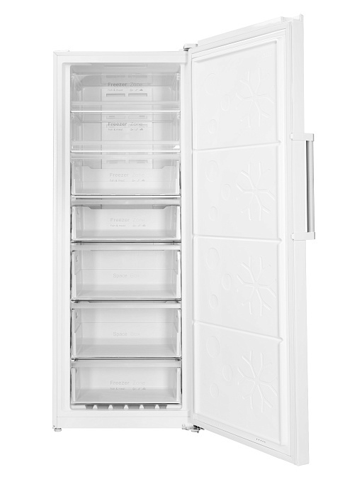 Морозильная камера Maunfeld MFFR185W — однокамерная качественная модель от известного производителя. Минималистичный дизайн будет актуален в большинстве интерьеров, а белый цвет изделия будет хорошо сочетаться с другой бытовой техникой. Этот отдельностоящий прибор станет оптимальным решением для качественного хранения продуктов. Он легко переставляется на другое место. Ножки регулируются для того, чтобы прибор можно было установить по уровню. Высота модели составляет 185 см, ширина — 70 см, глубина — 70 см. Такие размеры позволяют удобно дотянуться до самой верхней полки. Благодаря системе NoFrost на внутренних стенках не образуется льда и инеевого налета, поэтому такой агрегат не нужно размораживать вручную. Высокий класс энергоэффективности A++ гарантирует экономичное потребление электроэнергии.