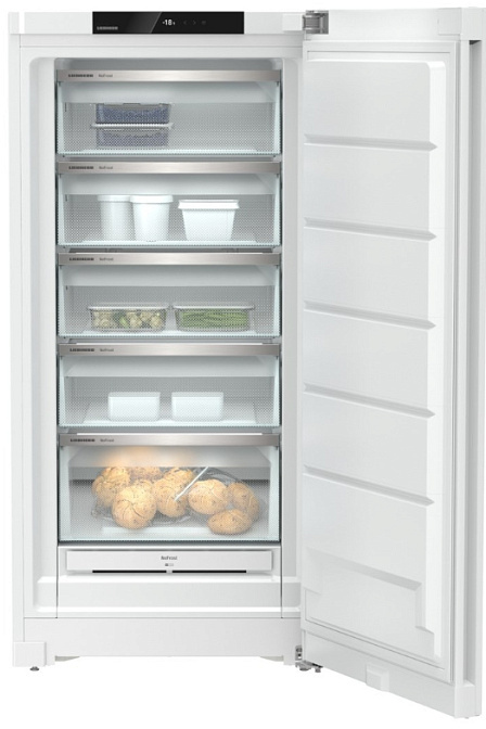 Морозильник Liebherr FND 6625 представляет собой высококачественную бытовую технику, произведенную в Германии. Этот отдельностоящий морозильник-шкаф включен в премиальную серию Plus и обладает классом энергопотребления E, что соответствует старому обозначению A++. Дизайн устройства выполнен в классическом белом цвете, корпус и дверь изготовлены из прочной стали. Справа расположен дверной упор, но при необходимости двери можно перевесить. Для удобства использования предусмотрен механизм EasyOpen и закрывающий механизм.