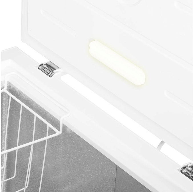 Функция быстрого замораживания расширяют возможности модели. Принцип заключается в непрерывной работе компрессора без остановки на максимально возможной температуре, что обеспечивает быстрые результаты. Автоматическая разморозка облегчает процесс обслуживания и экономит время. Среди преимуществ прибора — наличие внутреннего освещения. Оно позволяет с комфортом осуществлять загрузку и выгрузку продуктов. Включение происходит при открытии дверцы. В комплектацию к модели входит форма для льда.