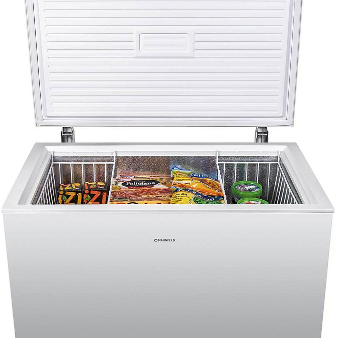Морозильный ларь Maunfeld MFL300W — это вместительная однокамерная модель от известного и надежного производителя. Изделие выполнено в классическом белом цвете, что обеспечивает его гармоничную интеграцию в большинство интерьеров. Этот отдельностоящий прибор станет оптимальным решением для качественного хранения продуктов. Высота модели составляет 83.5 см, ширина — 105.5 см, глубина — 69 см. Высокий класс энергоэффективности A+ гарантирует экономичное потребление электроэнергии. Для удобной организации хранения предусматриваются подвесные корзины. Управление прибором происходит с корпуса, при помощи поворотного регулятора. Красный свет индикатора показывает, что техника работает, а зеленый — что функционирует компрессор. Тихая работа морозильного ларя Манфелд MFL300W — еще одно преимущество устройства. Максимальные показатели составляют 42 дБ. Перед началом эксплуатации необходимо ознакомиться с инструкцией, которая входит в комплект поставки.