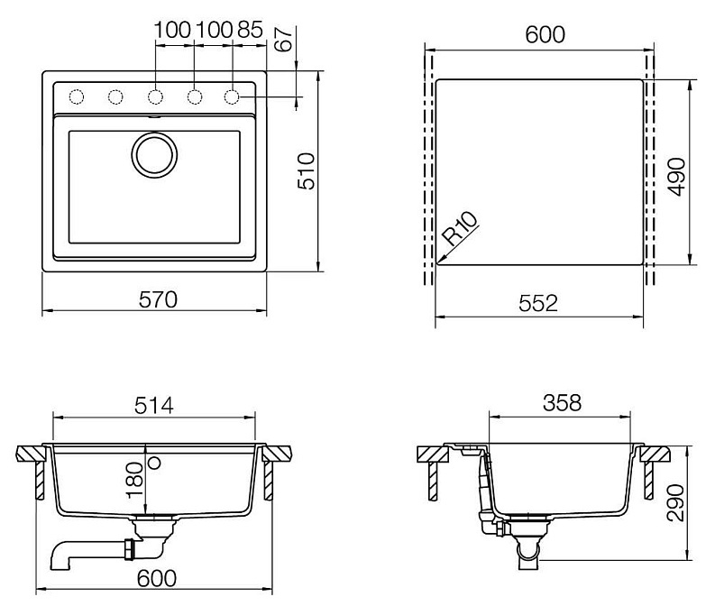 Мойка, Комплект крепежа, Перелив, Сифон, Сливная арматура