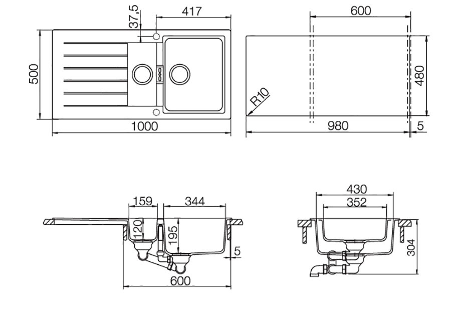 Мойка, Комплект крепежа, Перелив, Сифон, Сливная арматура