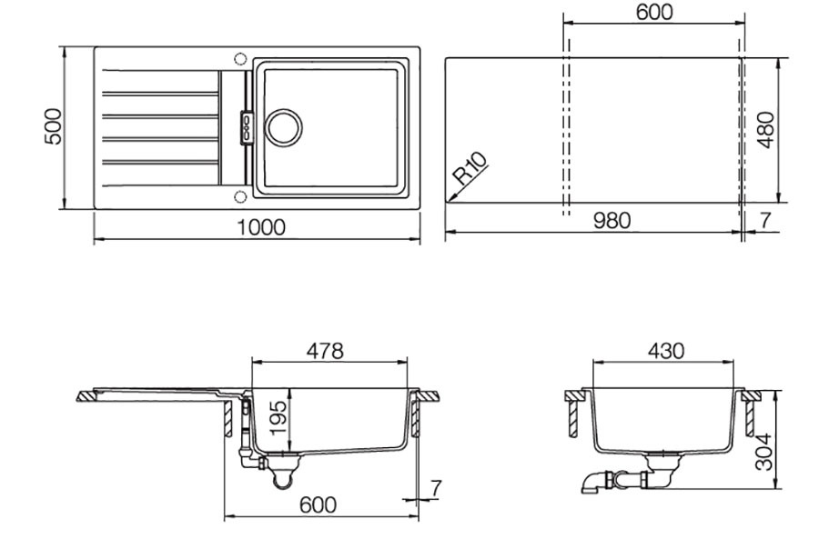 Мойка, Комплект крепежа, Перелив, Сифон, Сливная арматура