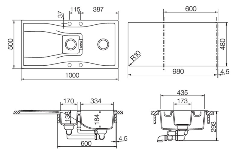 Мойка, Комплект крепежа, Перелив, Сифон, Сливная арматура, Разделочная доска