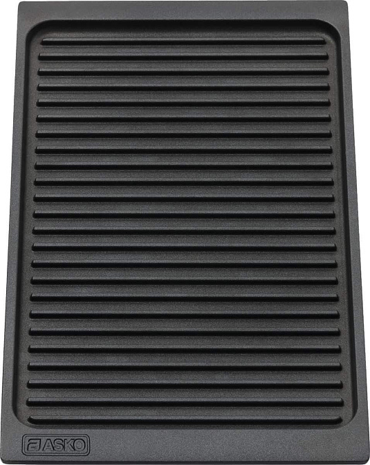 AG12A — накладная панель для приготовления гриля, работающая со всеми индукционными панелями Asko, имеющими прямоугольные зоны. Температуры жарки для передней и задней зон устанавливается на варочной поверхности.