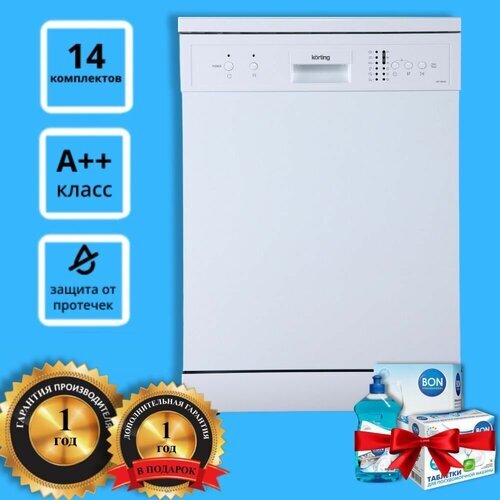 Отдельностоящая посудомоечная машина Korting KDF 60240 станет оптимальным решением для любой современной кухни. Эта отдельностоящая модель шириной 59.8 см одновременно вмещает до 14 стандартных комплектов посуды. Цвет машинки — белый. Тип сушки — активная. Благодаря наличию 6 программ можно с легкостью справиться с загрязнениями любой степени. Для удобной эксплуатации предусмотрена возможность использования средств «3 в 1». Безопасной работе служит система защиты от протечек. Высокий класс энергоэффективности A++ гарантирует экономичный расход электроэнергии.