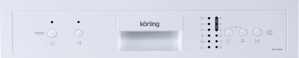 Панель управления посудомоечной машины Кертинг KDF 60240 организована кнопками. Запустить начало работы можно с отсрочкой старта до 9 часов. Анализатор автоматически оценивает жёсткость воды для установки оптимальных параметров. Функция половинной загрузки тратит столько воды, электроэнергии и моющего средства, сколько необходимо для очистки половины посуды, экономя ваш бюджет. Уровень шума не более 49 дБ обеспечит комфортную эксплуатацию даже в ночное время. А система полной защиты от протечек обезопасит от последствий случайной неисправности. На устройство распространяется гарантия производителя в течение 24 месяцев.