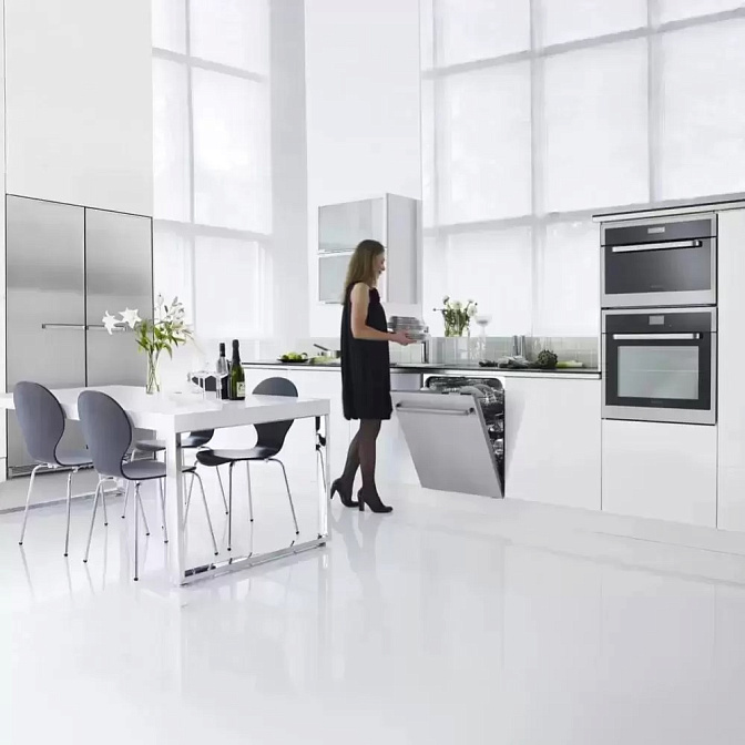 Она имеет 16 программ настройки режимов чистки посуды в зависимости от ее типа и интенсивности загрязнения. В число программ входит режим супер чистки, супер полоскания и охлаждения. Установить оптимальный режим чистки поможет удобный цифровой дисплей. Система «Aqua Level» обеспечивает регулировку воды во время процесса мойки.