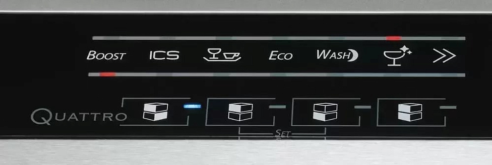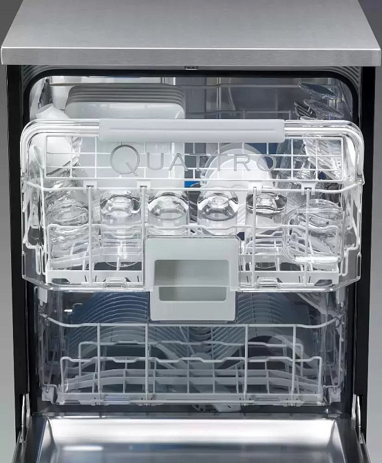Главной особенностью многофункциональной посудомоечной машины De Dietrich DQF 754 XE 1 является особый режим «Quattro», который позволяет использовать две зоны мойки с двумя разными программами одновременно. De Dietrich DQF 754 XE умеет анализировать объем загрузки посуды и степень загрязненности с автоматической адаптацией моечного цикла, что обеспечивает рациональную работу посудомоечной машины.