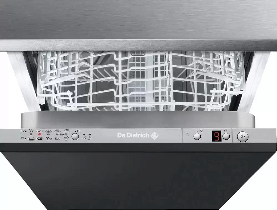 Посудомоечная машина De Dietrich DVY 1010 оборудована специальной системой контроля качества мойки, что является надежной гарантией того, что каждая загруженная в нее чашка или тарелка будет отмыта до зеркального блеска. Также, стоит отметить, наличие индикаторов моющих средств, которые помогут Вам определить нужное количество порошка.