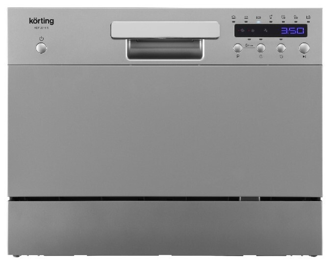 Korting KDF 2015 S — практичный вариант для кухни любого размера. Эта настольная модель (возможна установка в любом месте, куда можно подвести коммуникации) шириной пятьдесят пять сантиметров способна одновременно вместить до шести стандартных комплектов посуды. Машинка выполнена в стильном серебристом цвете, благодаря чему отлично впишется в интерьер в дизайне Hi-Tech. Тип сушки — конденсационная. Большой выбор программ (здесь их семь) помогает выбрать наиболее подходящие условия, для любых типов посуды и видов загрязнений. Для удобной эксплуатации предусмотрена возможность использования средств «3 в 1». Безопасной работе служит надежная система защиты от протечек «AquaControl» . Высокий класс энергоэффективности A+ гарантирует экономичный расход электроэнергии. Процесс мойки посуды можно отложить на заданное время в интервале до двадцати четырех часов, таким образом можно сэкономить электроэнергии, например, запуская цикл в ночное время.