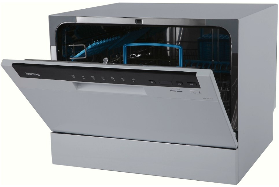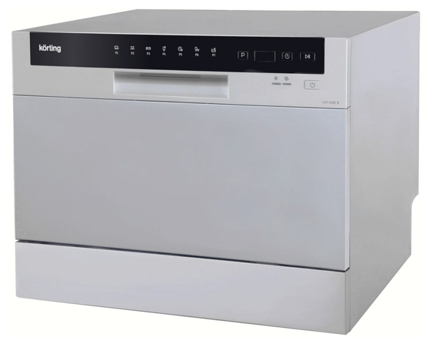 Korting KDF 2050 S — компактная посудомоечная машина серебристого цвета. Данный тип означает, что её можно устанавливать не на полу встроенную в гарнитур, а размещать на тумбе, столешнице, под раковиной или внутри кухонной колонны. Небольшие размеры и лёгкость подключения требуют наличия коммуникаций и немного свободного места.
