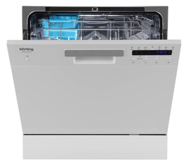 Korting KDFM 25358 W — компактная посудомоечная машина шириной пятьдесят пять сантиметров в универсальном белом цвете. Небольшие габариты данной модели позволяют разместить ее на столе или в любой части кухни, где есть коммуникации и немного свободного места, например, под раковиной или внутри кухонной колонны. Система защиты от протечек «AquaControl» гарантирует надежную эксплуатацию техники. Процесс мойки посуды можно отложить на заданное время, например, не дожидаясь момента действия экономичного тарифа электроэнергии. Для ухода за посудой предусмотрено семь разнообразных програм, среди которых: экономична, быстрая, интенсивная и деликатная для стекла. Благодаря функции 3 в 1 техника приспособлена к использованию комбинированных таблеток. Для очистки камеры от жировых загрязнений и известнякового налета предусмотрен практичный режим самоочистки.