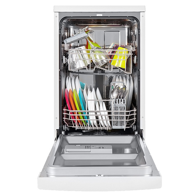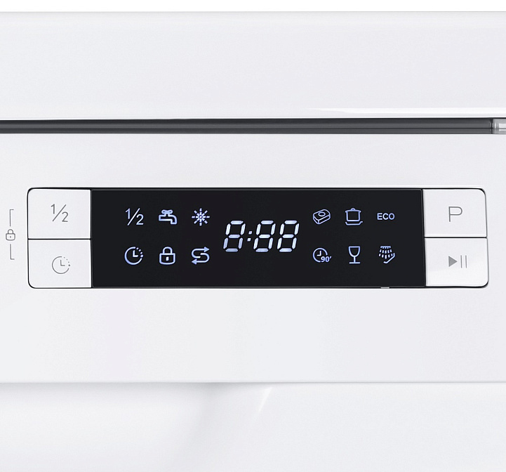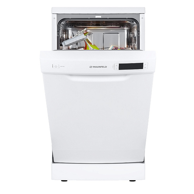 Посудомоечная машина MAUNFELD MWF08B белого цвета расходует всего 9 литров воды, чтобы качественно промыть 9 полноценных комплектов посуды. Прибор относится к А++ классу энергоэффективности, что только подчеркивает его экономичность. Она имеет 6 программ работы, подходящие для любой посуды, среди которых есть «90 минут», «Стекло» и «All in one», помогут добиться отличных результатов. За счет применения качественных материалов прибор имеет низкий уровень шума — 49 Дб. Благодаря защите от протечек вам не придется волноваться, что прибор может затопить соседскую и вашу квартиру, пока вас нет рядом.