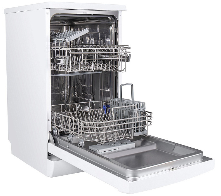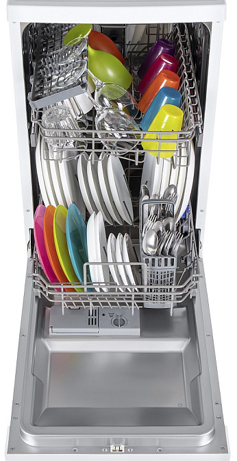 Две корзины удобно выдвигаются из камеры для комфортной загрузки и выгрузки. Наличие разнообразных держателей позволяет разместить посуду любых форм и размеров. Для столовых приборов предусмотрена отдельная переносная корзина. Индикаторы наличия соли и ополаскивателя оповещают пользователя о необходимости пополнения резервуаров для продолжения качественной и эффективной работы. Посудомоечная машина Манфелд MWF08B отличается простотой в настройке параметров работы. Элементы управления располагаются на фасаде изделия. Благодаря таймеру можно отсрочить время начала цикла на удобное для пользователя.