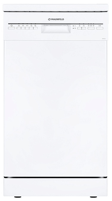 Посудомоечная машина MAUNFELD MWF08S станет надежной помощницей в выполнении рутинных кухонных задач. Модель с лаконичной белой расцветкой корпуса обладает хорошей вместительностью, равной 9 комплектам посуды. За один цикл работы машине потребуется 9.5 л водопроводной воды и 0.75 кВт/ч электроэнергии. Это указывает на ее экономичность и позволяет уменьшить счета за воду и электричество. Чтобы эффективно очистить въевшиеся загрязнения и минимизировать расход воды, вам достаточно подобрать одну из пяти программ работы. Имеется режим половинной загрузки, который поможет снизить расход воды и электроэнергии при неполной загрузке машины грязной посудой. Еще один плюс прибора заключается в наличии функции отложенного запуска, которая позволяет начать процесс очищения кухонных принадлежностей в установленные пользователем временные рамки.