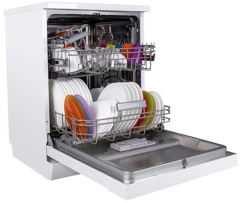 Посудомоечная машина MAUNFELD MWF12S вмещает до 12 комплектов столовых принадлежностей за раз, безупречно очищая их и расходуя при этом не больше 11.5 л воды. Такие показатели будут оптимальны для большой семьи. Прибор относится к отдельностоящему типу: это дает возможность установить устройство там, где это потребуется, не ориентируясь на положение, конструкцию или даже наличие кухонного гарнитура. В сочетании с классом энергоэффективности А+ это делает ее чрезвычайно экономичной. Счета за воду и электричество существенно уменьшатся с использованием этого прибора, что не может не радовать владельца. При этом модель имеет 5 программ мытья. Высокому уровня комфорта использования устройства способствует наличие индикатора наличия соли и индикатора наличия ополаскивателя, которые напоминают пользователю о необходимости пополнения резервуаров.