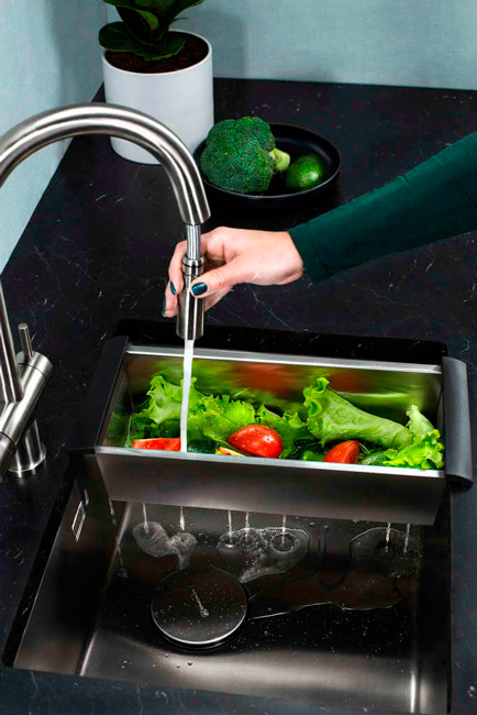 Керамический картридж, Пластиковый аэратор, Возможность подключения фильтров для очистки, Вытяжной шланг