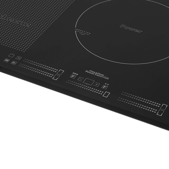 Барбекю, Минутник, Функция скоростного интенсивного нагрева каждого поля POWER, Индукционные нагревательные поля, саморегулируемые под размер посуды, Cистема автоматического отключения Safety Guard, Функция подогрева KEEP WARM скребок для чистки поверхности