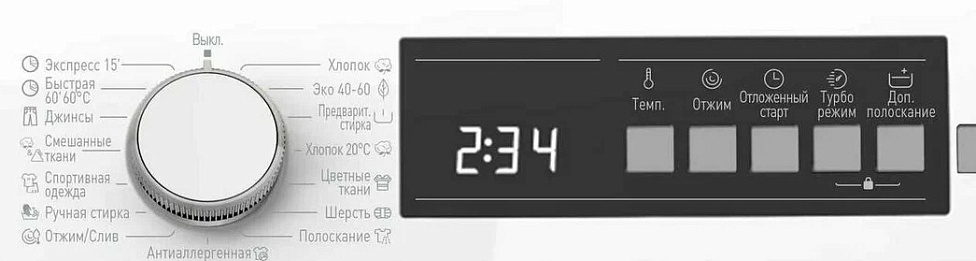 Эко 40-60, Хлопок 20°C, Отжим/Слив, Быстрая 60' 60°C, Экспресс 15'