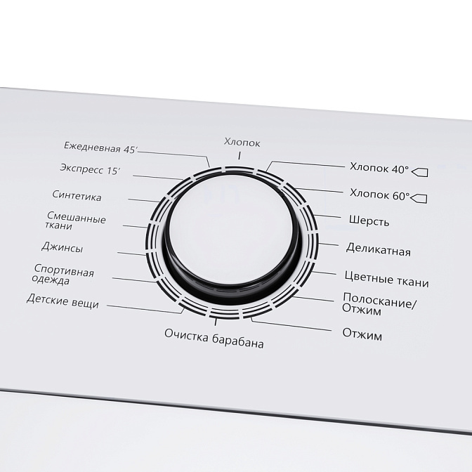 ежедневная 45”, полоскание и отжим, хлопок 40°, хлопок 60°, экспресс 15”