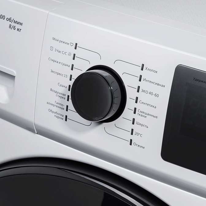 Ручная стирка, Предварительная стирка, Экономичная стирка, Стирка изделий из шерсти, Стирка изделий из хлопка, Сушка, Стирка плюс сушка, Стирка смешанных тканей, Стирка синтетических тканей, Отжим, Интенсивная стирка, Воздушная стирка, Гипоаллергенная стирка, Ежедневная стирка, Дополнительная стирка