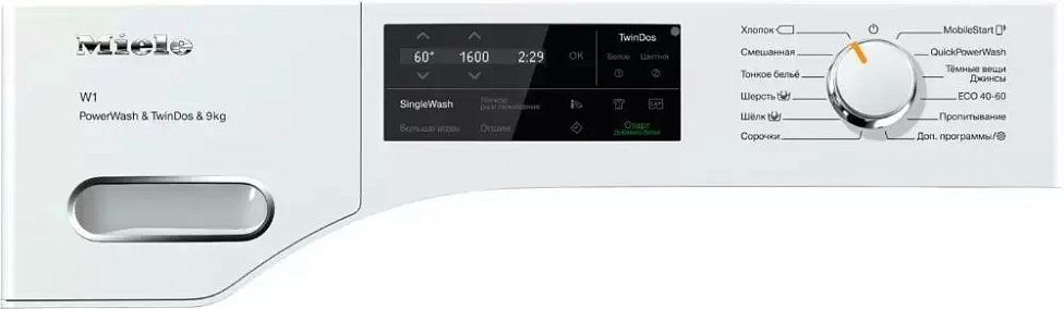 Стиральная машина Miele WWI860 WCS оснащена мощным инверторным мотором ProfiEco, который обеспечивает продолжительный срок службы, экономичность (класс энергопотребления А+++) и сниженный уровень шума (при стирке — 48 дБ, при отжиме — 64 дБ). Управление производится при помощи поворотного регулятора и дисплея DirectSensor. Инновационная технология PowerWash обеспечивает превосходные результаты отстирывания при экономном использовании ресурсов, например, программа QuickPowerWash длится всего 49 минут.