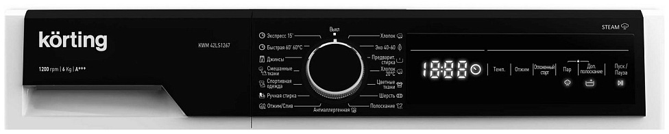 Стиральная машина с паром Korting KWM 42LS1267 с фронтальной загрузкой характеризуется отдельностоящим типом установки. Высота модели составляет 84.5 см, ширина — 59.7 см, глубина — 41.6 см. Барабан из нержавеющей стали вмещает до 6 кг сухого белья. Для качественного ухода за одеждой из тканей различного типа предусмотрено 15 программ. Цвет машинки — белый. Стиль — современный. Высокий класс энергоэффективности A+++ служит экономичному потреблению электроэнергии.