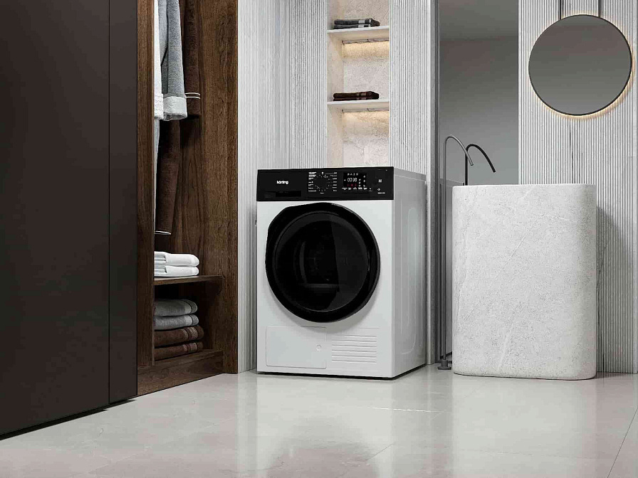 Сушильная машина Korting KD 69 IHP — стильная и современная модель для ухода за одеждой. Черно-белый дизайн подчеркивает элегантное исполнение техники. Технология Heat Pump (сушка с тепловым насосом) с горячим и холодным контуром, нагревает воздух, который далее, при помощи вентилятора, попадает в барабан и забирает влагу из мокрых тканей. Использование данной системы помогает сушить вещи деликатнее и существенно снижать потребление электроэнергии. Поверх стеклянного люка установлена специальная защитная крышка, которая позволяет избежать скопления пыли и защитить от прикосновению к нагретому стеклу на программах с высокой температурой. В комплект поставки входит специальная корзина для сушки деликатных вещей, которую можно легко извлечь из барабана. Для наиболее комфортной эксплуатации предусмотрена функция отсрочки старта, благодаря которой можно запустить необходимую программу, например, в ночное время (для экономии электроэнергии).