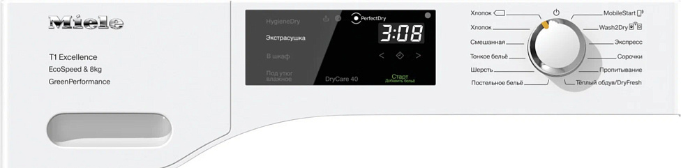 Интеллектуальное управление сушкой, Система контроля влажности PerfectDry, Функция объединения в сеть Miele@home, управление DirectSensor