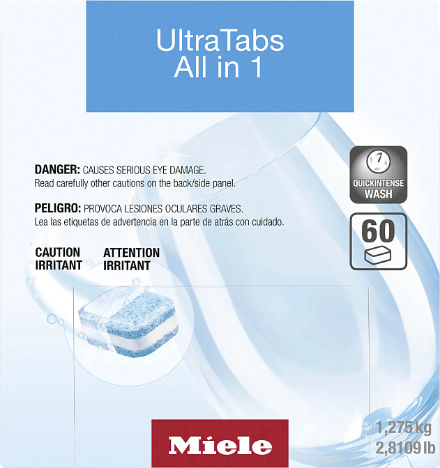 Таблетки для посудомоечных машин объединяют эффект моющего средства, ополаскивателя, соли и средства от накипи. Действуют при низкой температуре, защищают посуду из серебра и нержавеющей стали от пятен, стеклянную — от повреждений; также защищают машинку от отложения жира на внутренних элементах. В одной упаковке 60 таблеток.