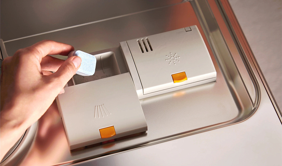 Таблетки для посудомоечных машин объединяют эффект моющего средства, ополаскивателя, соли и средства от накипи. Действуют при низкой температуре, защищают посуду из серебра и нержавеющей стали от пятен, стеклянную — от повреждений; также защищают машинку от отложения жира на внутренних элементах. В одной упаковке 60 таблеток.
