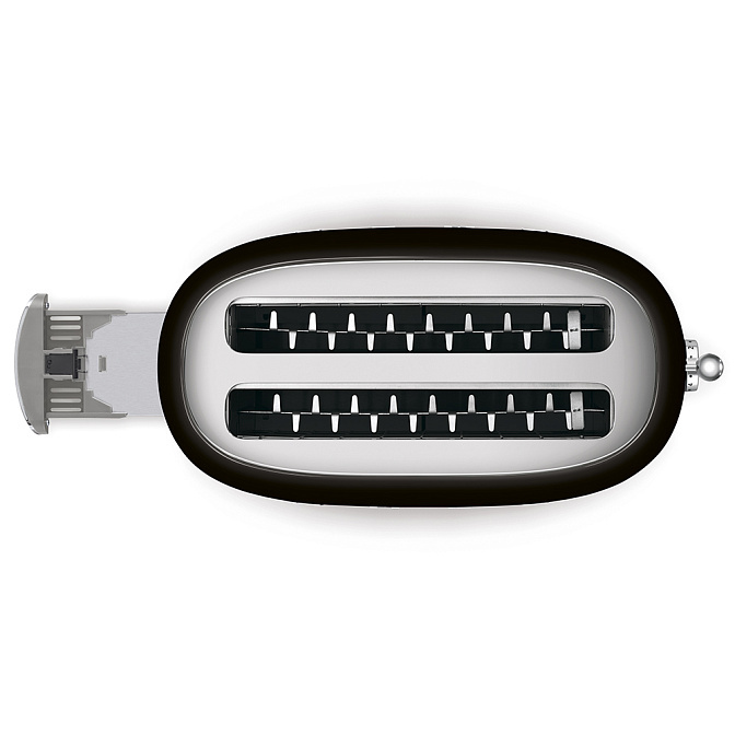 Дизайн: стиль 50-х годов, Цвет основания: полированный хром, Цвет верхней панели: полированный хром, 1 панель управления, Материал поддона для крошек: полированная нержавеющая сталь, Материал рычага: нержавеющая сталь, Кнопки с подсветкой, Подсветка поворотного переключателя, Тип вилки электропитания: Euro, Автоматическое выбрасывание тостов, Дополнительные аксессуары (приобретаются отдельно):, - TSSR02 – держатель для сэндвичей (2 шт.), - TSBW02 - решетка для подогрева булочек (1 шт.)