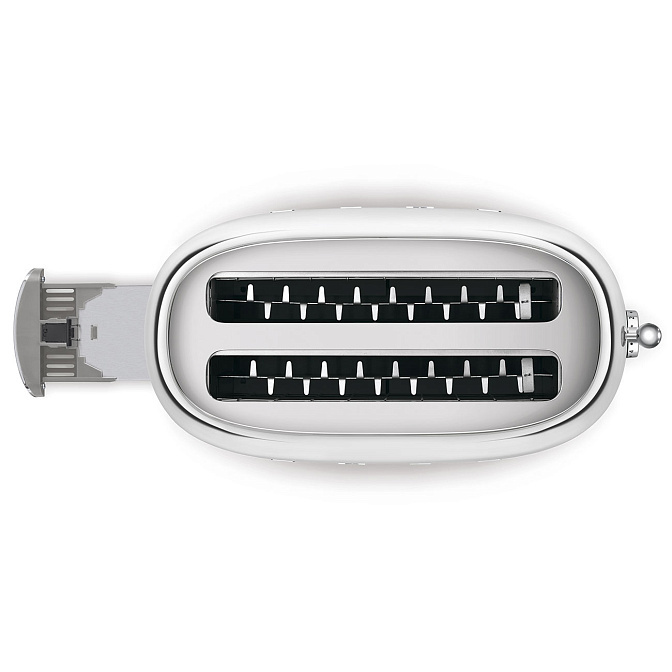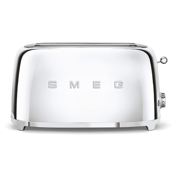 Дизайн: стиль 50-х годов, Цвет основания: полированный хром, Цвет верхней панели: полированный хром, 1 панель управления, Материал поддона для крошек: полированная нержавеющая сталь, Материал рычага: нержавеющая сталь, Материал кнопок / переключателя: пластик, Кнопки с подсветкой, Подсветка поворотного переключателя, Тип вилки электропитания: Euro, Автоматическое выбрасывание тостов, Дополнительные аксессуары (приобретаются отдельно):, - TSSR02 – держатель для сэндвичей (2 шт.), - TSBW02 - решетка для подогрева булочек (1 шт.)