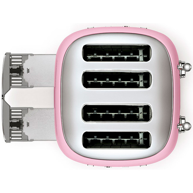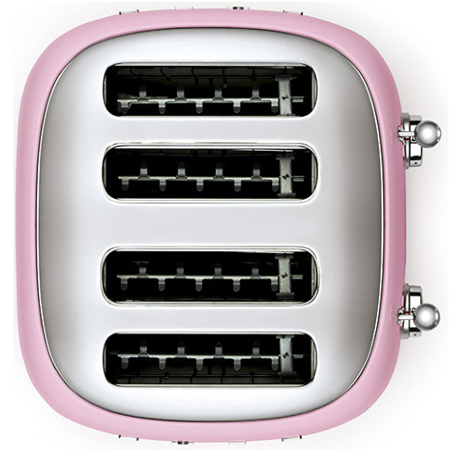 Дизайн: стиль 50-х годов, Цвет основания: полированный хром, Цвет верхней панели: полированный хром, 2 независимые панели управления, 2 поддона для крошек, Материал поддона для крошек: полированная нержавеющая сталь, Материал рычага: нержавеющая сталь, Материал кнопок / переключателя: пластик, Кнопки с подсветкой, Подсветка поворотного переключателя, Тип вилки электропитания: Euro, Автоматическое выбрасывание тостов, Приобретается отдельно: TSSR01 – держатель для сэндвичей (2 шт.); TSBW01 – решетка для подогрева булочек (1 шт.)