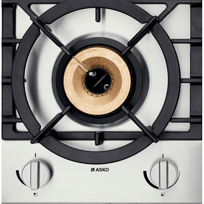 Варочная панель ASKO HG1666SB предназначена для подключения в кухне с газовым оснащением. Для безопасности работы у неё есть система газ-контроля, которая перекрывает вентиль в случае затухания огня. Эта модель оснащена тремя гибридными конфорками класса А++ и одной конфоркой Wok, на которую можно ставить выгнутые сковородки для приготовления особых блюд. Решётки выполнены из чугуна, а сама панель из нержавеющей стали, которая покрыта специальным составом. Благодаря этому, удалять грязь, накипь и остатки жира намного проще. Есть также система электроподжига. Панель управления располагается спереди, переключение уровней силы пламени производится с помощью выступающих ручек. Их можно снимать и мыть в посудомоечной машине. Современный стиль внешнего вида панели будет органично и красиво смотреться в интерьере кухни.
