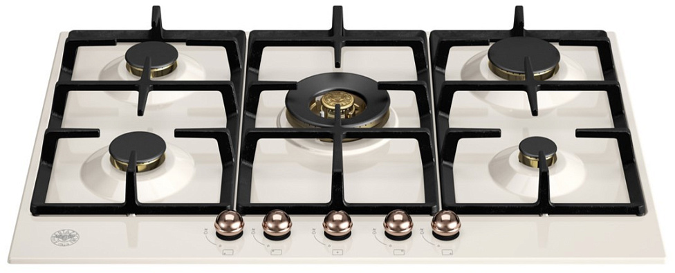 Газовая варочная панель Bertazzoni P755CHERAC снабжена 5 конфорками. Тип нагревательных зон — газовые. Высота модели составляет 5 см, ширина — 75.2 см, глубина — 52.2 см. Материал поверхности — эмаль, благодаря чему она легко очищается от жирного налета и других загрязнений. Комфортную эксплуатацию прибора гарантирует механическое управление. Также здесь есть газ-контроль, автоподжиг горелок автоматический. Основной цвет данного устройства — бежевый, что служит его сочетанию с кухонным интерьером в любом стиле: от современного до ретро и классики. Универсальный дизайн и независимый тип установки обеспечивают гибкие условия монтажа этой варочной панели.