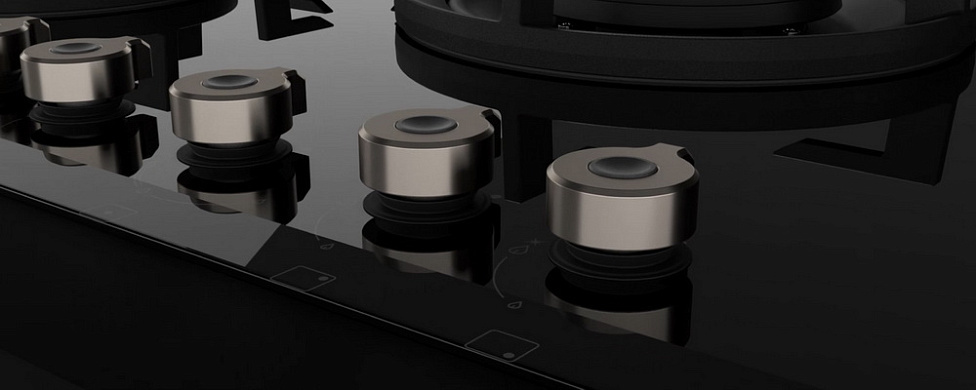 Рукоятки управления: металлические, Тип конфорок: моноблочные матовые черные, Автоподжиг одним касанием