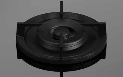 Черные мягкие на ощупь рукоятки управления, Моноблочные матовые черные конфорки, Конфорка Dual wok