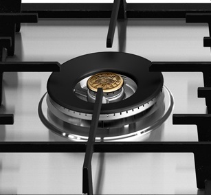 Низкий профиль, Рукоятки управления с металлическим покрытием, Алюминиевые конфорки, Конфорка Dual wok