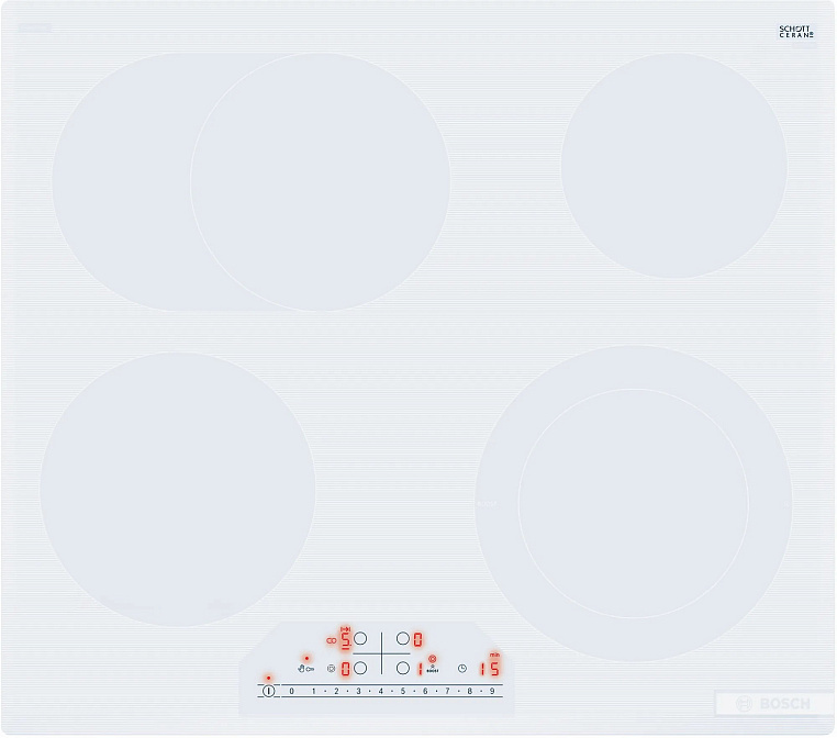 Электрическая варочная панель Bosch PKN652FP2E снабжена 4 конфорками. Тип нагревательных зон — электрические hi-light. Высота модели составляет 4.5 см, ширина — 59 см, глубина — 52 см. Материал поверхности — стеклокерамика, благодаря чему она легко очищается от жирного налета и других загрязнений. Комфортную эксплуатацию прибора гарантирует сенсорное управление. Также здесь есть таймер с отключением, защитное отключение. Основной цвет данного устройства — белый, что служит его сочетанию с кухонным интерьером в любом стиле: от современного до ретро и классики. Универсальный дизайн и независимый тип установки обеспечивают гибкие условия монтажа этой варочной панели.