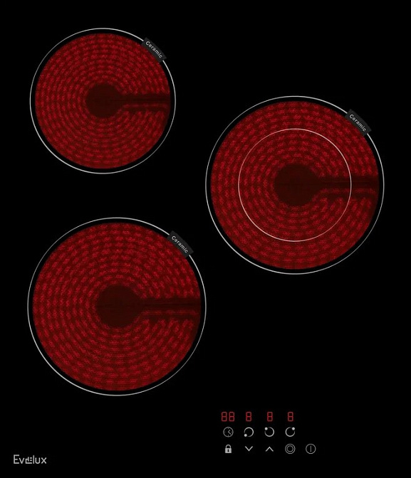 Электрическая варочная панель Evelux HEV 431 B снабжена 3 конфорками. Тип нагревательных зон — электрические hi-light. Высота модели составляет 5 см, ширина — 45 см, глубина — 52 см. Материал поверхности — стеклокерамика, благодаря чему она легко очищается от жирного налета и других загрязнений. Комфортную эксплуатацию прибора гарантирует сенсорное управление. Также здесь есть таймер с отключением, защитное отключение. Основной цвет данного устройства — черный, что служит его сочетанию с кухонным интерьером в любом стиле: от современного до ретро и классики. Универсальный дизайн и независимый тип установки обеспечивают гибкие условия монтажа этой варочной панели.
